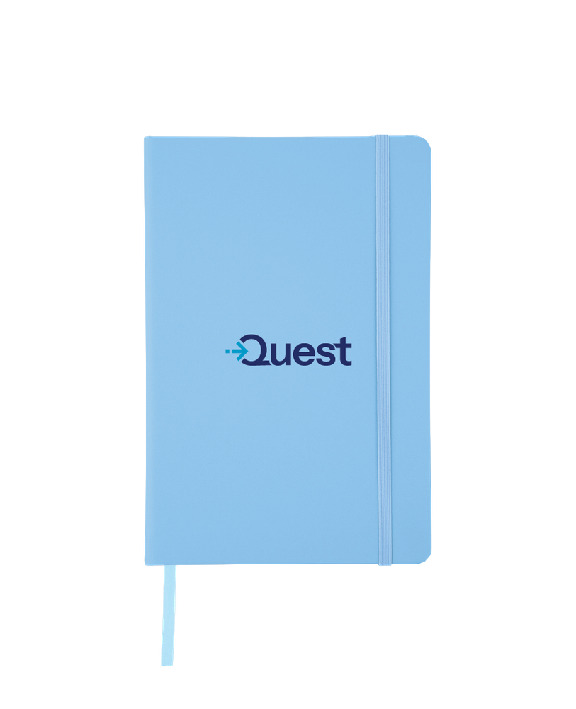 96‑page lined journal with a recycled PU cover, 80 GSM ivory paper, matching bookmark, strap closure, and a gusseted back pocket. FSC® certified, supporting forest‑based materials sourced to rigorous environmental and social standards.